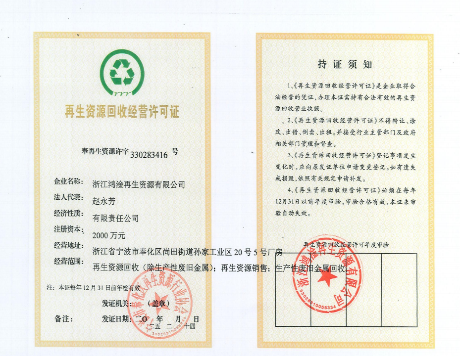 再生资源回收经营许可证