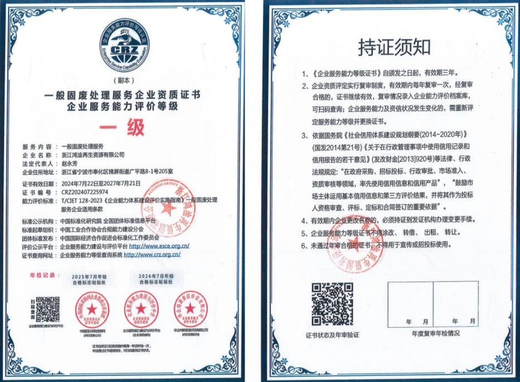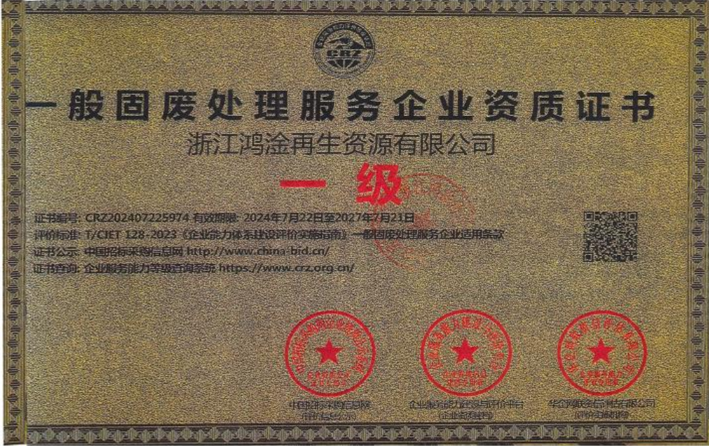 一般固废处理服务企业资质证书